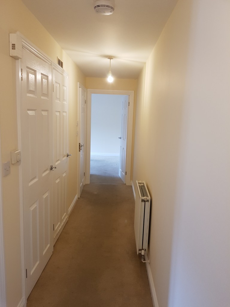 The entire flat was decorated with Albany magnolia vinyl matt walls and Albany white vinyl matt ceilings, the doors and woodwork were repainted in Johnstones quick drying white eggshell. The entire flat was recarpeted after we had finished. This work was carried out through the agent who the landlord phoned after completion to thank us for our work