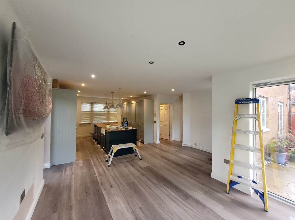 This was a really nice job done by Leekes of Melksham, they had knocked through 3 rooms to create a modern kitchen/family room, with separate utility and we were then asked to paint it