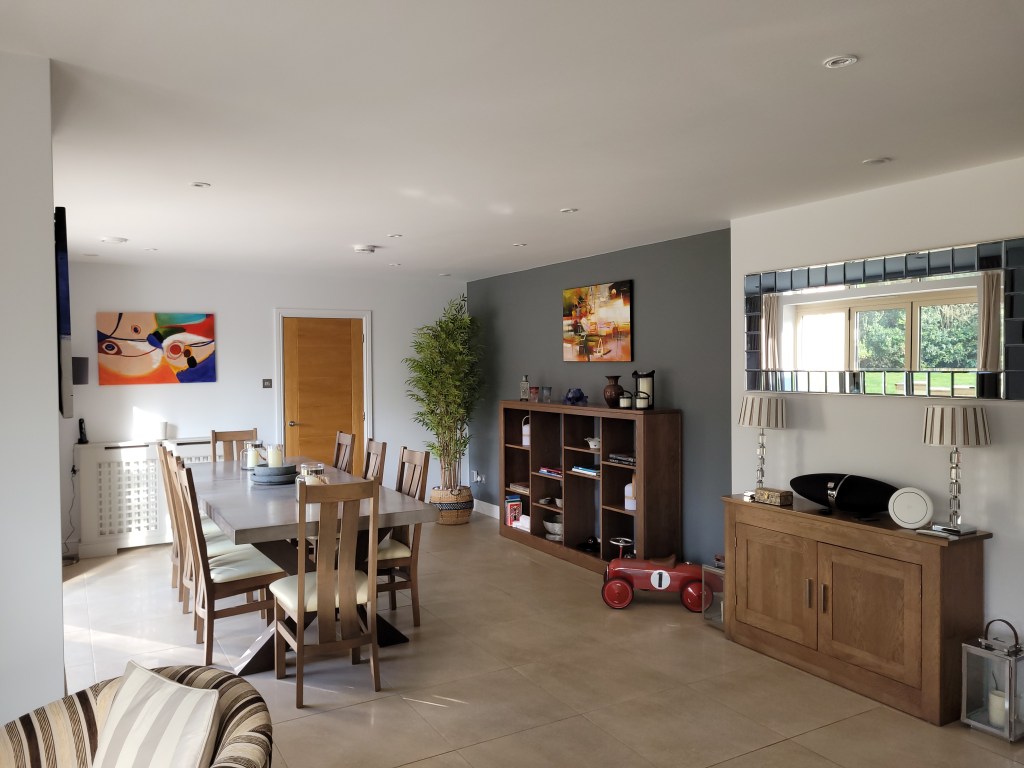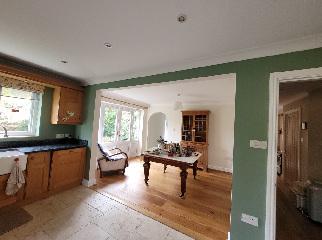 The customer wanted the kitchen/utility room, dining area and lounge repainting in Farrow & Ball colours, the customer wanted it done while they were on holiday for two weeks which made it easier for everybody